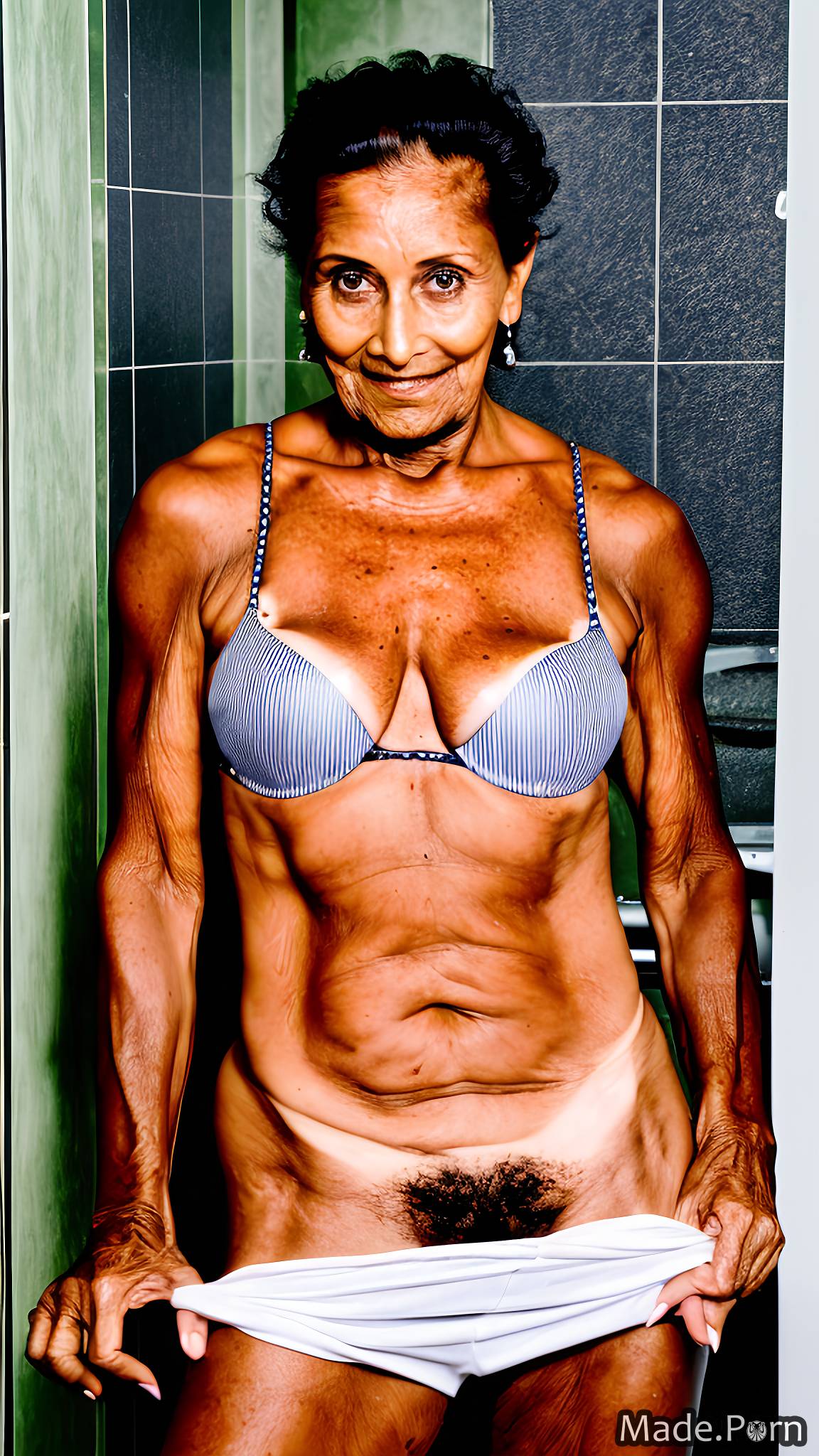 Porn image of portrait seductive woman skinny bodybuilder tanned skin granny created by AI